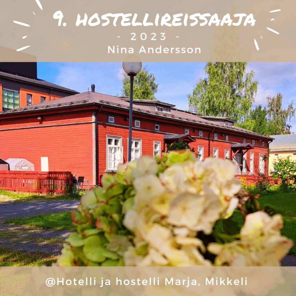 Mikkelistä on monesti tullut ajettua ohi, mutta nyt tuli mahdollisuus pysähtyä, hostellireissata ja tutustua hostelli Marjaan. Hostelli Marja sijaitsee keskustan tuntumassa vanhalla Kasarmialueella. Etelän ihmisenä olin etukäteen huolissani mihin saan autoni parkkiin. Mutta ei huolta: hostellin edessä oli mukavasti parkkipaikkoja. Jo ensisilmäys hostellista paljasti, että olin tulossa kodikkaaseen paikkaan perinteikkäässä kasarmimiljöössä.