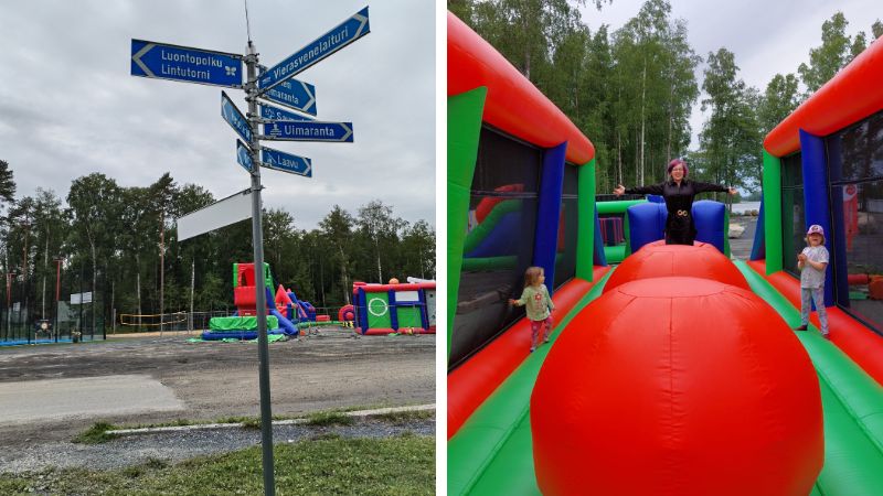 Satamassa oli myös leikkipuisto, pomppulinnoilla varustettu Touhupark, golfrata, ruokapaikka, jätskikioski, vene ja sup-lauta vuokrausta sekä lintutornille johtava luontorata. Siellä olisi voinut viettää, vaikka toisenkin päivän. Meillä oli kuitenkin aikataulu, sillä seuraavana päivänä oli työpäivä. Vesipuistossa miehellä ja tyttärelläni oli ollut todella hauskaa ja aika kului siivillä, lopulta jouduin käydä huikkaamassa, että nyt olisi aika siirtyä rantaan. Pomppupuistossa, leikkipuistossa ja rannalla kaikki viihtyi ja kotiin lähdettiin hymyssä suin ja kyseltiin, milloin mentäisiin uudelleen.