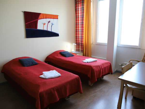 Hostel Iiriksessä on 40 mukavaa majoitushuonetta. Tilavissa 1-3 hengen huoneissa on oma kylpyhuone, jääkaappi, radio ja wifi. Osan huoneista voi yhdistää toisiinsa väliovella perhehuoneeksi. Saatavilla on lasten sänkyjä ja lisävuoteita. Majoitushuoneiden läheisyydessä on oleskelutiloja televisioineen ja keittiönurkkauksineen sekä mahdollisuus pyykinpesuun. Iiris-keskus ja sen majoitustilat on suunniteltu kauttaaltaan esteettömäksi aisti- ja liikuntavammaisia ajatellen.