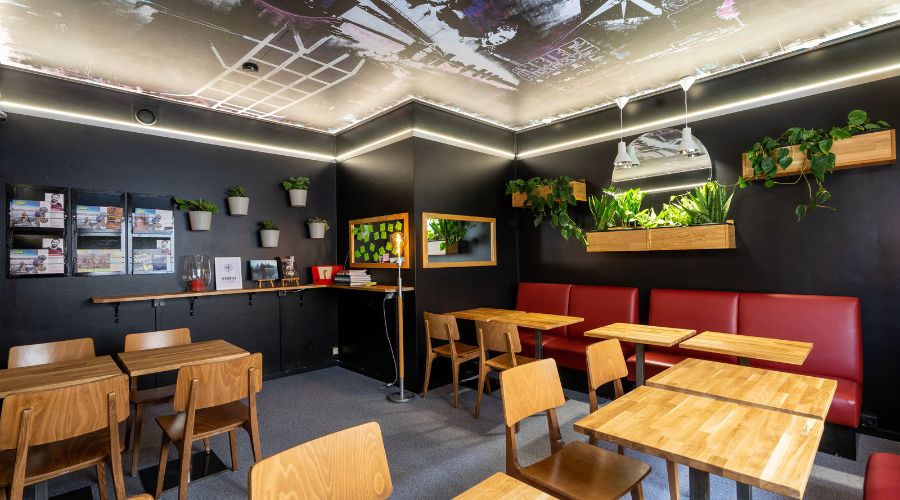 Hostellissa on viihtyisä yhteiskeittiö omien aterioiden valmistamiseen, sekä oleskelutila seurusteluun ja ruokailuun. Kirjastonurkkauksessa voit rentoutua lukemalla tai pelaamalla pleikkaria tai lautapelejä.