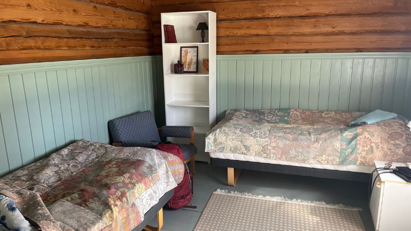 Hostellihuoneeksi muodonmuutoksen kokenut entinen opettajan navetta
