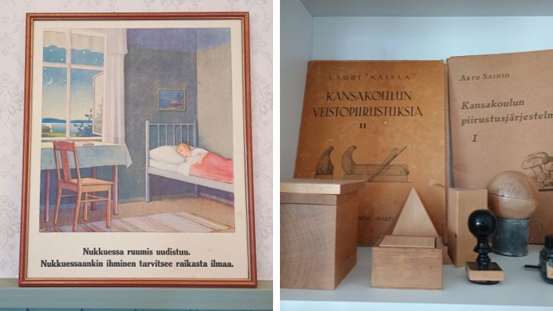 Opintolassa oli kansakouluhistorioista kertovia hurmaavia vanhoja esineitä, ja seinälle laitetut opetustaulut keuhkotautia vastaan sisälsivät erinomaisia neuvoja!