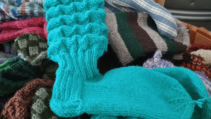 Opintolasta löytyy itsetehtyjen verhojen ja muiden kodintekstiilien lisäksi myös upeita villakäsitöitä