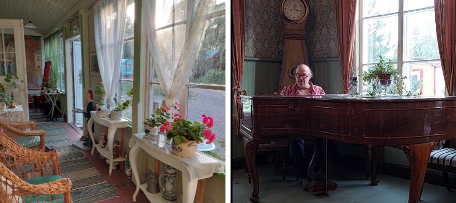 Autoilimme Vantaalta käsin kylläkin paikalle suorinta reittiä – tai ainakin alkuun suorinta, kunnes se muuttui ihastuttaviksi Inkoon mutkateiksi – ja sitä myöten vanhan ison puurakennuksen pihaan, jossa meitä tervehti oikein tuttavallinen ja ihmisrakas kissa. Mieheni totesikin oivasti meidän saapuneen ”kas, Viirun ja Pesosen maisemiin”, eikä loppuvisiitin aikanakaan paikasta saatu ensivaikutelma pettänyt.